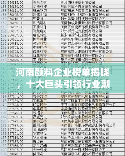 在中国的涂料行业中,河南省的颜料企业以其卓越的品质和创新能力脱颖而出,本文将详细介绍河南颜料企业排名前十名,以更好地了解这些企业的实力和影响力。