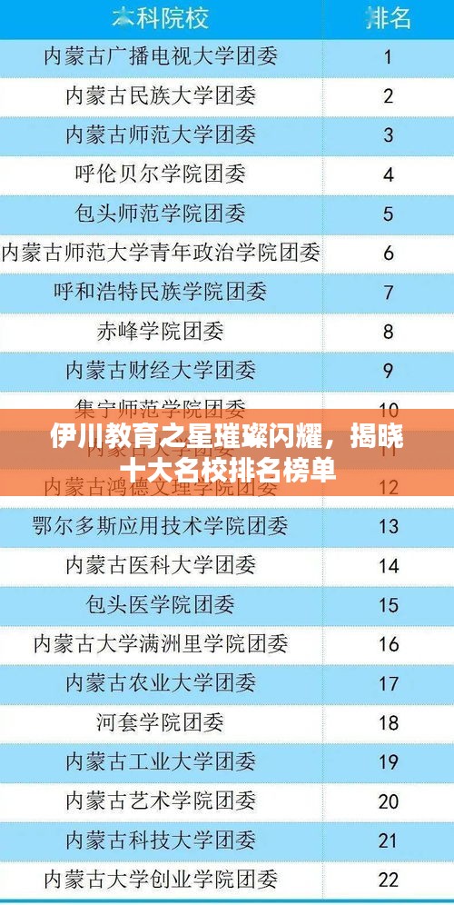 伊川排名前十的学校是伊川教育的骄傲,它们为伊川教育事业的发展做出了杰出贡献,在未来,我们期待这些学校能够继续发挥榜样作用,为伊川培养更多优秀的人才,我们也希望更多的学校能够借鉴这些学校的成功经验,共同推动伊川教育事业的发展。