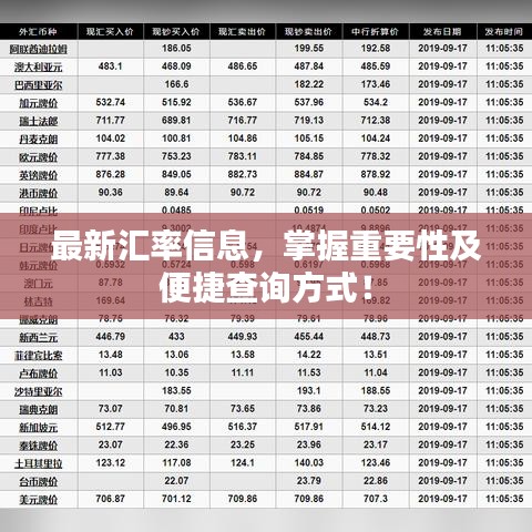 在全球化的今天,汇率信息对于个人和企业来说愈发重要,随着国际贸易的频繁和跨境金融活动的增多,"今日汇率查询"成为了人们日常生活中的一个常见需求,本文将探讨掌握最新汇率信息的重要性,并介绍便捷的查询方式。