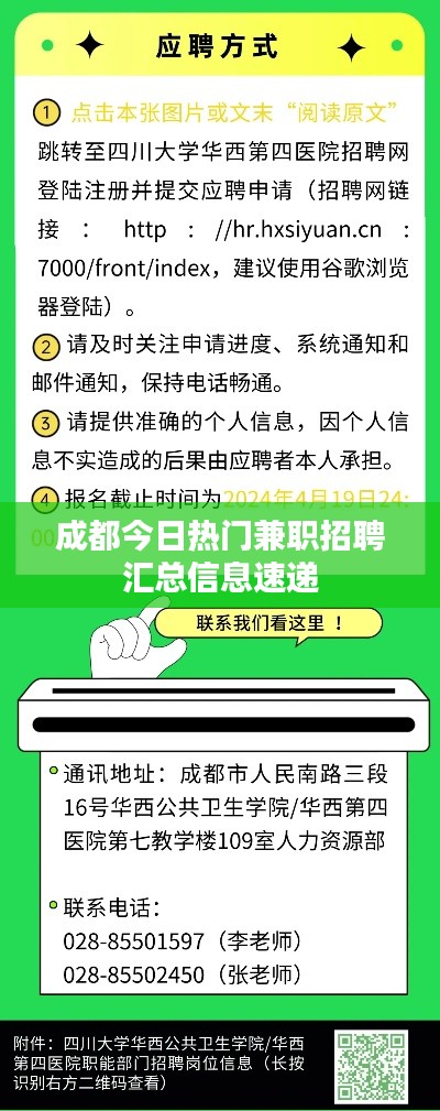 是成都今日最新招聘兼职信息的汇总,希望能对您的求职之路有所帮助,在求职过程中,请务必保持警惕,选择正规渠道,保护好自己的权益,祝您找到一份满意的工作!