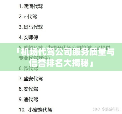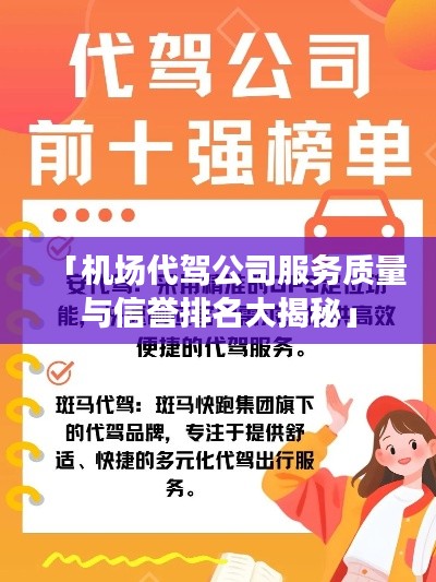 机场代驾公司排名是根据服务质量、信誉及用户评价等因素综合考量的结果,旅客在选择代驾公司时,应根据自身需求和实际情况进行选择,以确保获得安全、舒适的代驾体验。