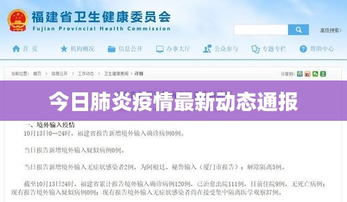 今日肺炎最新通报显示,全球疫情依然严峻,但国内肺炎疫情已经得到了有效控制,各地政府和医疗机构正在采取一系列措施,加强疫情防控,提高公众的防疫意识和能力,我们相信,在全社会的共同努力下,我们一定能够战胜疫情,迎来更加美好的明天。