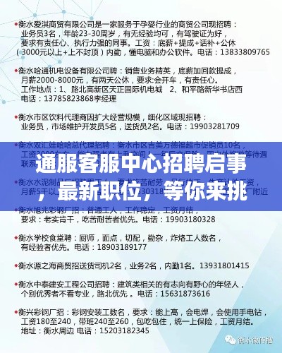 随着公司业务的不断扩展和服务需求的日益增长,通服客服中心正在积极招聘优秀的客服人才,以优化我们的服务团队,提升服务质量,我们寻求具备热情、耐心、细致、沟通能力强的人才加入我们的行列,共同为客户提供高效、满意的服务。