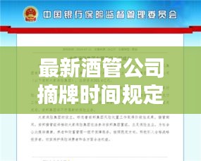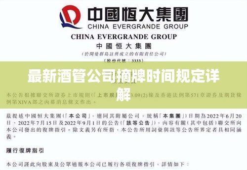 随着市场经济的发展,酒管公司在运营过程中需要遵守的法规日益严格,摘牌时间规定作为其中的一项重要内容,对于酒管公司的运营有着重大影响,本文将详细介绍最新的酒管公司摘牌时间规定,以帮助相关企业了解并遵守相关法规。