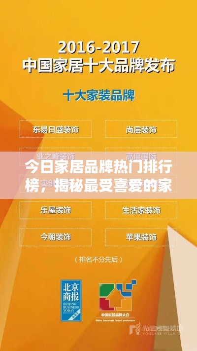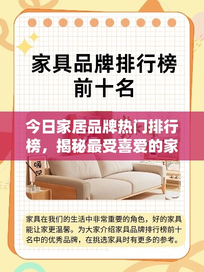 随着生活品质的提升,人们对家居环境的要求也日益增加,家居市场的竞争日益激烈,各种品牌层出不穷,在当下这个瞬息万变的时代,哪些家居品牌最受消费者欢迎呢?本文将为你揭示今日家居最新排名,带你了解当下最热门的家居品牌。