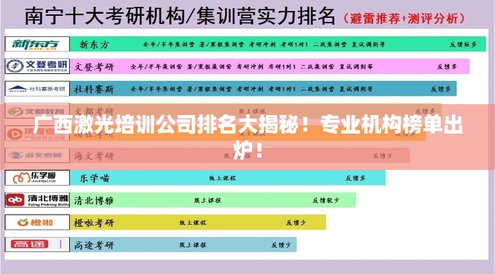 随着科技的不断发展,激光技术已成为当今工业、医疗等领域的重要技术之一,在广西,激光技术的培训也日益受到关注,越来越多的企业和个人开始重视激光技术的培训和学习,本文将介绍广西激光培训公司的排名,为广大读者提供参考。