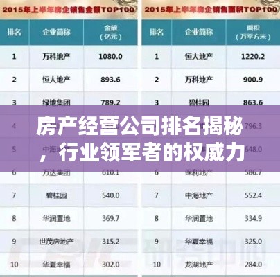 随着城市化进程的加速,房地产市场日益繁荣,房产经营公司的竞争也日益激烈,如何在众多房产经营公司中脱颖而出,成为行业的领军者,是每一个房产经营公司追求的目标,本文将对当前房产经营公司的排名进行详细介绍,揭示这些行业领军者的成功秘诀。
