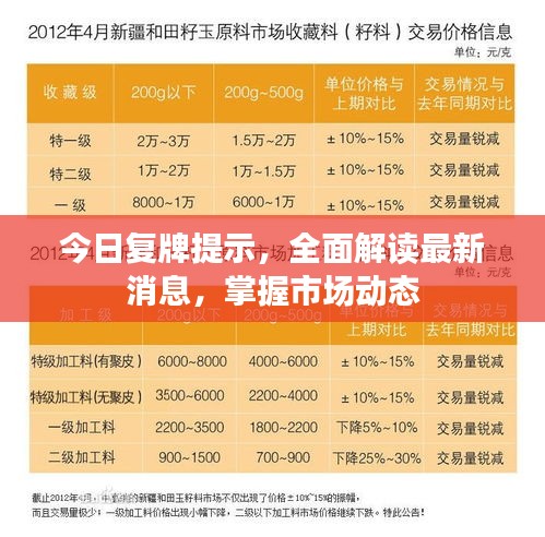 随着资本市场的日益活跃,复牌消息的关注度也越来越高,本文将围绕“今日复牌提示最新消息”这一主题,为读者带来全面的解读和深入的分析。
