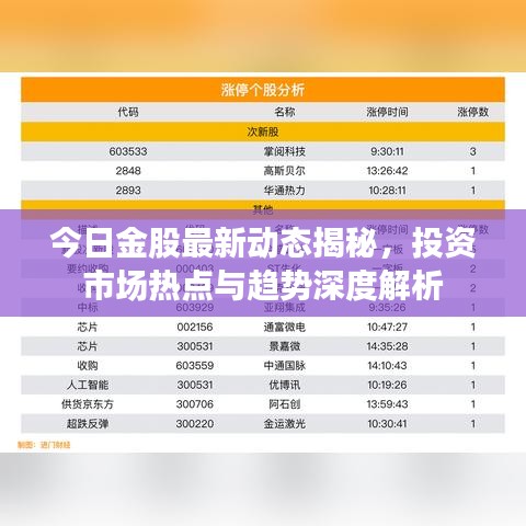 随着金融市场的日益繁荣,投资者们对于股市信息的关注度越来越高,本文将围绕“今日金股最新信息”这一主题,为您解析当前投资市场的热点与趋势。