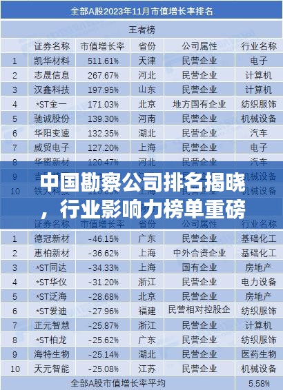 随着中国经济的高速发展,基础设施建设日新月异,勘察行业作为支撑这一进程的重要力量,日益受到社会各界的关注,本文将探讨中国勘察公司的排名及其行业影响力,分析这些公司的竞争优势和市场份额,为读者提供一个全面的行业视角。
