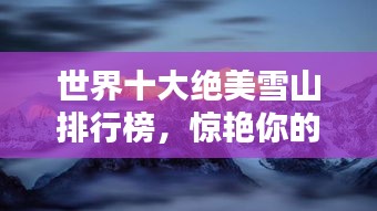在广袤的地球上,雪山以其威严的姿态和壮丽的景色吸引着无数探险者和旅行者的目光,它们是大自然的杰作,以其永恒的魅力让人们为之倾倒,我们将为您揭晓世界十大最美雪山的排名榜,带您领略这些令人叹为观止的自然奇观的壮丽景色。