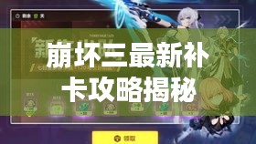 在崩坏三中,补卡是一种重要的机制,可以让玩家在缺少角色卡牌时,通过特定方式获取,了解补卡机制,是制定补卡攻略的前提,在游戏中,补卡的方式有多种,包括活动赠送、任务奖励、商店购买等,玩家需要根据自己的实际情况,选择合适的补卡方式。