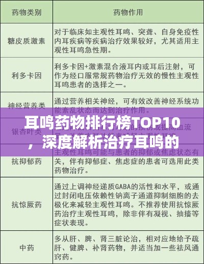 随着医药科技的进步,针对耳鸣的药物种类日益增多,以下是耳鸣药排名前十名的介绍: