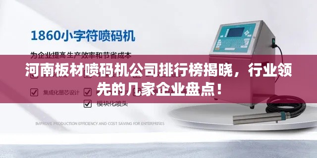 随着科技的不断进步,喷码机在各行各业的应用越来越广泛,尤其在板材行业,喷码机的重要性日益凸显,河南作为板材生产大省,拥有众多的板材喷码机公司,本文将对河南板材喷码机公司进行排名,以便消费者更好地了解并选择适合自己的产品和服务。