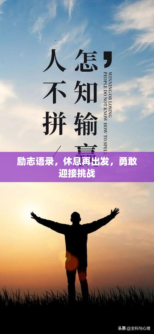 人生旅途上,我们总会遇到各种困难和挑战,当我们感到疲惫时,不要害怕休息,因为休息是为了更好地再出发,我们也要学会寻找生活的乐趣,享受人生的美好,让我们勇敢地面对挑战,坚持不懈,为了梦想而努力,让我们一起牢记这篇励志语录,为人生旅途中的自己加油鼓劲,累了就休息,再出发,相信我们一定能够走向成功的人生。