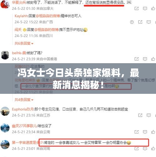 冯女士成为了社会关注的焦点之一,她的最新消息不断在今日头条上更新,引起了广大网友的关注和热议,我们将为大家带来冯女士的最新消息和相关信息。