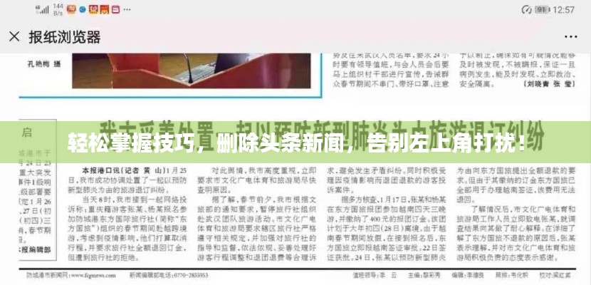 随着智能手机的普及,我们经常会在手机应用的首页看到各种各样的头条新闻,这些新闻可能不是我们感兴趣的,或者我们希望删除它们以节省空间或避免干扰,本文将指导您如何删除左上角的头条新闻,帮助您更好地管理您的手机应用。
