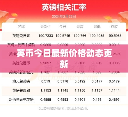 根据最新数据,今日英币价格呈现出一定的波动,截至发文时间,英币汇率的具体价格如下(此处需根据实时数据更新):