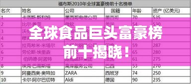 食品行业是一个庞大的商业领域,涉及到众多细分市场,包括饮料、肉类、乳制品、零食等,在这个行业中,一些企业凭借出色的表现和创新策略,成功脱颖而出,成为全球巨头,本文将介绍全球食品富豪排名前十名,这些企业家凭借其在食品行业的卓越成就和财富积累,跻身全球富豪榜单。