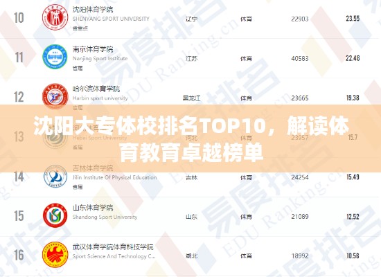 沈阳,作为东北地区的重要城市,一直以来都是教育的重要基地,在体育教育领域,沈阳大专体校更是以其独特的教学风格和优秀的教育资源脱颖而出,本文将为您详细介绍沈阳大专体校排名前十名,带您了解这些体育教育的卓越之地。