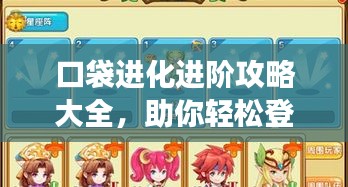 随着游戏的不断升级和更新,玩家们对于口袋进化的进阶需求也日益增长,本文将为大家带来口袋进化进阶的最新攻略,帮助大家在游戏中取得更好的成绩,提升战斗力。