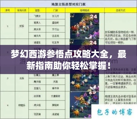 《梦幻西游》作为一款经典的网络游戏,吸引了众多玩家的热爱,在游戏中,参悟点的使用对于角色成长至关重要,本文将为大家分享一些关于梦幻西游参悟点的最新攻略,帮助玩家更好地提升角色能力,享受游戏乐趣。