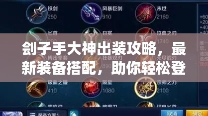 游戏后期,玩家需要追求最高伤害和生存能力,推荐选择一套完整的神装,包括XX神器、XX传说武器等,还可以根据游戏内的英雄技能和敌人特点,搭配一些特殊装备,如增加移动速度、提高技能冷却缩减等。
