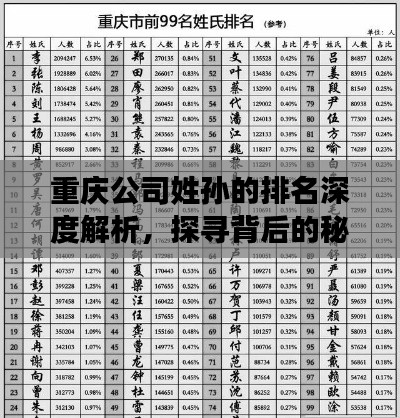随着重庆市经济的蓬勃发展,各行各业的公司如雨后春笋般崭露头角,在众多公司中,姓孙的企业家们也凭借他们的智慧和努力,创建了一系列有影响力的公司,本文将针对重庆公司中姓孙的排名进行一番探究。