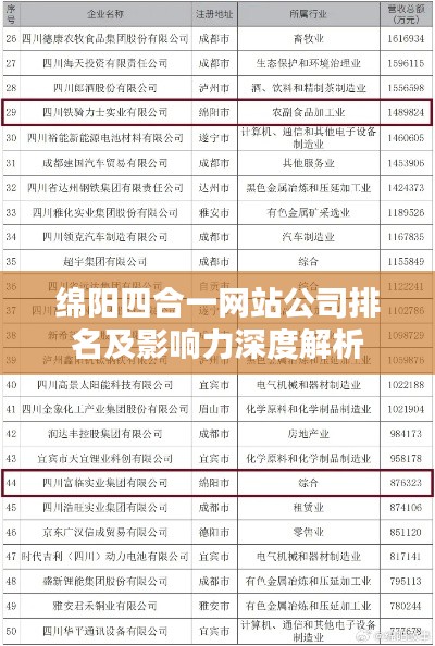 随着信息技术的飞速发展,网站建设和优化已成为企业发展的重要支撑点,在绵阳市,众多网站公司如雨后春笋般涌现,四合一网站公司”以其卓越的服务和实力,在业界崭露头角,赢得了广大客户的信赖和好评,本文将为您揭示绵阳四合一网站公司的排名及其影响力。