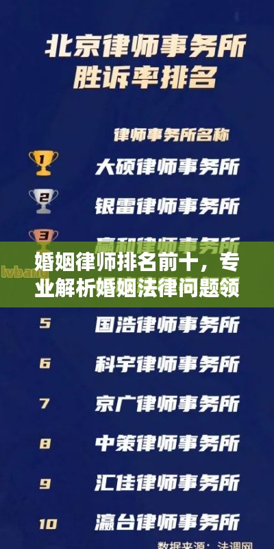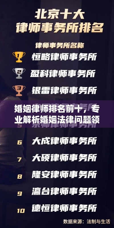 本文介绍了婚姻律师前十名排名,这些律师在婚姻法律领域具有深厚的专业知识和丰富的实践经验,选择合适的婚姻律师对于维护自身权益至关重要,希望本文能够帮助广大民众更好地了解婚姻律师,为自身权益提供有力保障。