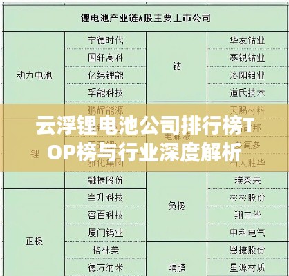 随着新能源行业的飞速发展,锂电池产业在中国各地呈现出蓬勃的发展态势,云浮地区作为华南地区的重要城市,其锂电池产业也取得了显著的进步,本文将针对云浮地区的锂电池公司进行排名及分析,以揭示其行业地位和发展趋势。