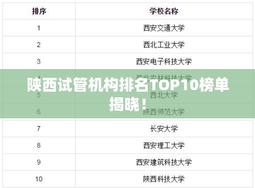 随着科技的发展和人们对生育问题的关注,试管婴儿技术已成为解决不孕不育问题的一种重要手段,在陕西地区,许多专业的试管机构为广大患者提供了优质的服务,以下是陕西试管机构排名前十名,供大家参考。