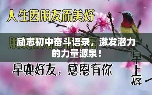 在初中的这段旅程中,让我们铭记这些励志语录,勇敢地面对每一个挑战,为了梦想而努力拼搏,相信只要我们坚持不懈地努力,我们一定能够创造属于自己的辉煌人生。