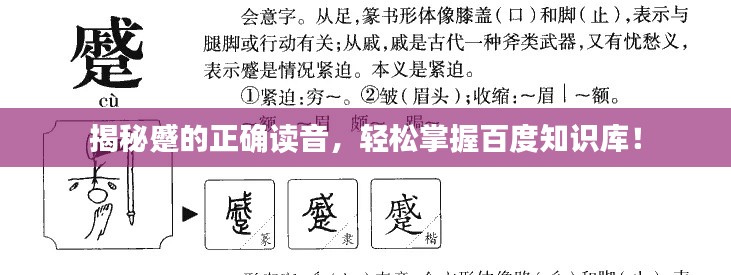通过百度搜索,我们可以轻松了解到“蹙”的正确读音,我们也应该重视知识的普及,不断提高自己的语文水平,希望这篇文章能够帮助大家解决关于“蹙的读音”的困惑,让大家在学习和生活中更加得心应手。