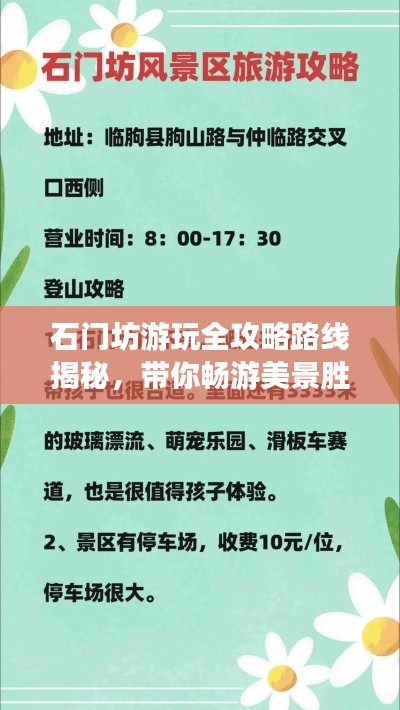 本次石门坊游玩攻略路线带你领略了石门坊的历史与自然风光,在游玩过程中,请注意安全、环保,合理安排时间,品尝当地美食,携带必要装备,希望这份攻略能帮助你更好地享受石门坊的美景,留下美好的回忆,祝你旅途愉快!