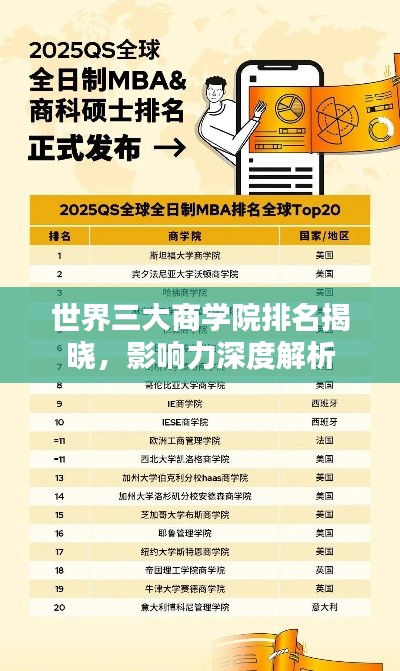 在全球经济日益发展的今天,商学院的教育质量与影响力成为了衡量一个国家乃至全球商业发展水平的重要指标之一,世界上有许多优秀的商学院,其中三家商学院尤为突出,它们在全球范围内的知名度和影响力极高,本文将为您详细介绍这三所世界著名商学院的排名及其影响力。