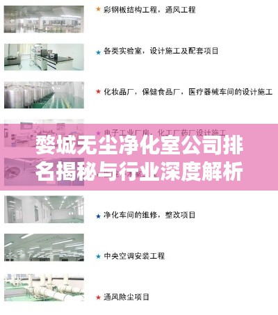 随着科技的飞速发展和工业化的推进,无尘净化室在电子、医药、食品等行业的应用越来越广泛,婺城作为经济发达的地区,无尘净化室市场需求持续增长,吸引了众多企业投身于这一领域,本文将探讨婺城无尘净化室公司的排名及相关市场分析。