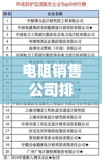 在电子元件市场中,电阻作为重要的基础元器件之一,其市场需求量大且持续增长,随着科技的飞速发展,电阻行业的竞争也日益激烈,本文将探讨销售电阻公司的排名及其行业影响力,帮助读者了解电阻市场的现状和未来趋势。