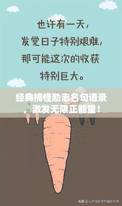 搞怪和励志并不是矛盾的,一句搞怪的名句可以让我们在困境中找到乐趣,从而激发内心的力量去战胜困难,人生路上,我们需要正能量去激励自己前行,也需要幽默和乐观的态度去面对生活中的挫折和困境,让我们在追求梦想的路上,用搞怪的方式去迎接每一个挑战吧!这样的人生才会更加精彩!