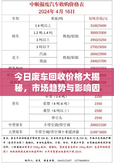 随着汽车产业的快速发展,废车回收市场逐渐成为一个不可忽视的领域,本文将围绕“今日废车回收最新价格”这一主题,探讨当前废车回收市场的现状、趋势以及影响因素。