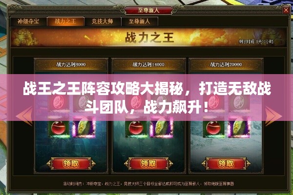 转载请注明来自工巨商城,本文标题:《战王之王阵容攻略大揭秘,打造无敌战斗团队,战力飙升!》