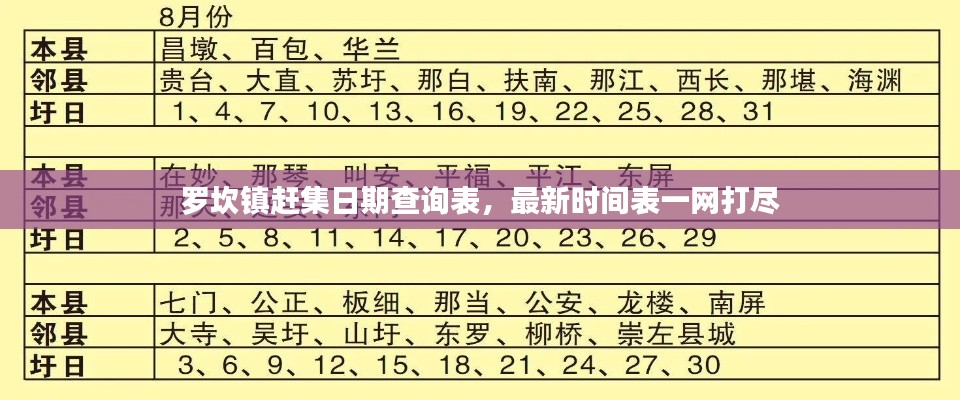 为方便广大群众查询罗坎镇赶集日期,除了传统的口口相传方式外,罗坎镇政府还开设了官方网站和社交媒体平台,定期发布赶集日期信息,各大搜索引擎也能快速找到最新的罗坎镇赶集日期查询表,建议广大群众关注官方渠道,获取最新信息。