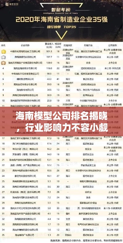 海南,这片充满活力和潜力的热带土地,近年来在经济、文化、科技等多个领域取得了显著的发展成果,特别是在模型产业方面,海南的模型公司以其独特的创意、精湛的工艺和优质的服务,逐渐在行业内崭露头角,本文将为您详细介绍海南模型公司的排名及其行业影响力。
