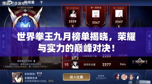 在这个充满热血与汗水的季节,世界拳王们的表现让人热血沸腾,他们的排名背后是无数次的坚持与努力,值得我们敬佩和学习,希望本文能为您带来关于世界拳王九月排名的全面了解,让我们一起见证荣耀与实力的较量。