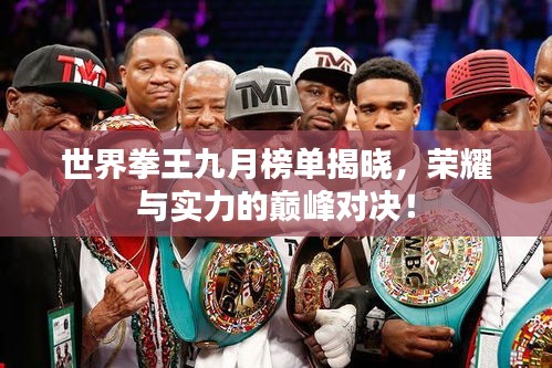 随着九月的到来,全球拳击界再次沸腾,各大赛事激战正酣,拳王们的表现引人注目,在这个充满热血与汗水的季节,世界拳王的排名究竟如何呢?本文将为您揭晓九月世界拳王的排名情况,一起见证荣耀与实力的较量。