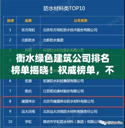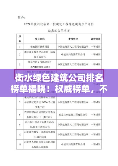 随着全球环保意识的逐渐增强,绿色建筑已成为全球建筑行业的重要发展方向,衡水,作为河北省的重要城市,其绿色建筑行业的发展也备受瞩目,本文将为您详细介绍衡水地区的绿色建筑公司排名。