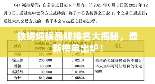 随着人们对烹饪工具的日益重视,铁铸炖锅因其独特的烹饪效果和优质的烹饪体验,逐渐受到广大消费者的喜爱,本文将为您带来铁铸炖锅品牌排名榜最新的信息,让您了解哪些品牌在激烈的市场竞争中脱颖而出。