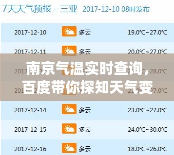 随着季节的更迭,气温的起伏变化成为我们生活中不可或缺的一部分,南京,这座历史悠久的城市,其四季分明,气温多变,吸引了无数人去探寻,就让我们通过百度一下,来了解一下南京的气温情况。