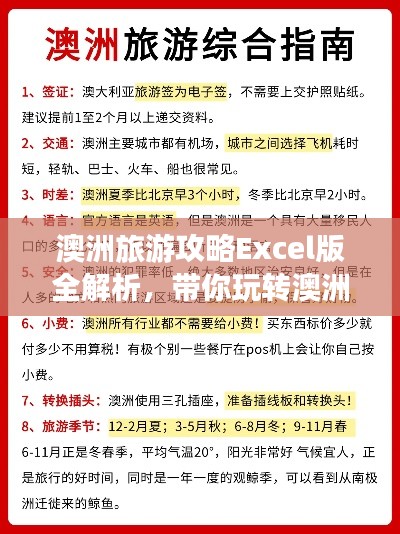 澳大利亚,这片位于南半球的神奇土地,以其独特的自然风光、丰富的文化、友善的人民和多元的环境吸引着全球旅行者,本篇文章将为您提供一份详尽的澳洲旅游攻略Excel版,助您轻松规划行程,尽情享受澳洲之美。