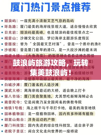 集美与鼓浪屿,厦门的两大标志性地点,犹如两颗璀璨的明珠镶嵌在厦门的海洋之滨,集美以其独特的学术氛围和美丽的自然风光吸引着无数游客,而鼓浪屿则以独特的历史建筑和浓厚的艺术气息闻名于世,本文将为您提供一份详尽的集美鼓浪屿旅游攻略,带您领略这两地的独特魅力。